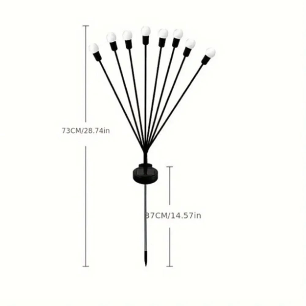 Rüzgar estiğinde sallanabilen çok yumuşak ve esnek tellerle üretilmiştir. Kablo gerekmez. Güneş ışıkları, gün boyunca şarj etmek için güneş enerjisini emer ve geceleri otomatik olarak AÇILIR. Suya dayanıklılık sayesinde lamba yuvalarında su damlacıkları olduğunda güneş LED ışıkları normal şekilde çalışabilir. Solar dekoratif ışıklar, çim partisi, bahçe dekorasyonu, akşam yemeği partisi tüm etkinliklere uygundur. Kışın, güneş ışığının güneş ışığından yeterli enerjiyi emememesi normaldir, bu da genellikle daha düşük parlaklığa ve geceleri daha kısa çalışma süresine neden olur. Lütfen ilk kez kullanmadan önce güneş ışığını güneş ışığı altında 6-8 saat şarj edin. 18 mm çapında 8 led lamba, şarj süresi ve aydınlatma süresi gün ışığı yoğunluğuna, coğrafi konuma, hava koşullarına, mevsime ve diğer koşullara göre değişir.